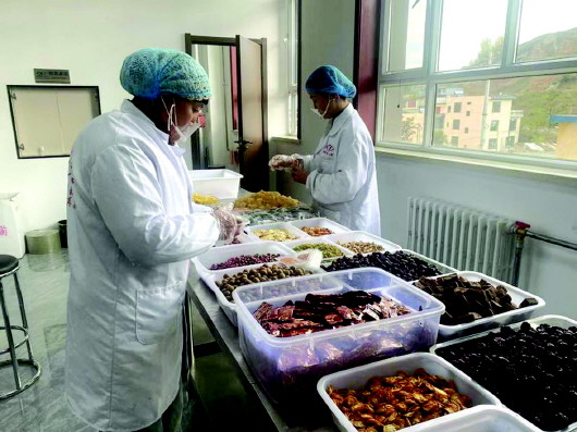 10月28日,在张家川回族自治县海掌柜八宝茶生产车间,工人们正在忙着分拣产品。八宝茶,也称“三泡茶”,是古丝绸之路上的传统饮料。今年4月,海掌柜八宝茶生产线在张家川餐饮服务业公共实训基地建成投产,目前已实现销售产值180多万元。 新天水·天水日报记者 郭艳秋 摄