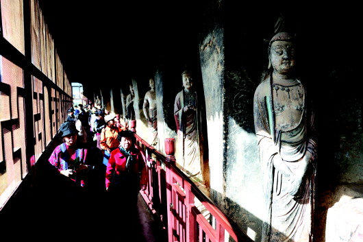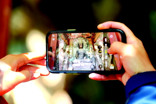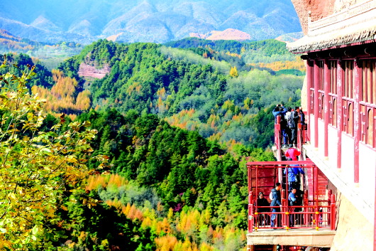 □图/文 新华社记者 陈 斌 郎兵兵 晚秋时节,位于甘肃省天水市的麦积山石窟与层林尽染的山峦构成绚烂的秋色画卷,吸引了不少游客前来参观游览。 麦积山石窟,因其形似麦垛而得名,是“中国四大石窟”之一,也是世界文化遗产“丝绸之路:长安——天山廊道路网”的遗产点之一,被称为“东方雕塑陈列馆”。 图一: 11月2日,游客在麦积山石窟参观(无人机照片)。 图二: 11月2日,游客在麦积山石窟参观游览。 图三: 这是11月2日拍摄的麦积山石窟秋景。 图四: 这是11月2日拍摄的麦积山秋景(无人机照片)。 图五: 这是11月2日拍摄的麦积山石窟秋景(无人机照片)。 图六: 11月2日,游客在麦积山石窟参观游览时用手机拍摄开放洞窟彩塑。 图七: 11月2日,游客在麦积山石窟参观。
