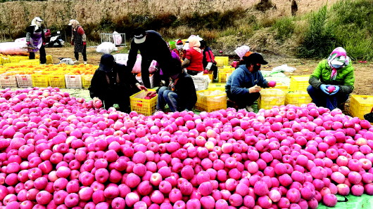 金秋送爽,硕果飘香。10月以来,天水花牛苹果、红富士苹果陆续成熟,漫山遍野红彤彤的苹果挂满枝头,为浓浓秋日点缀出了绚丽的色彩。 连日来,在麦积区花牛、伯阳、石佛等乡镇,苹果园里一片忙碌的景象,果农们正忙着采摘、装箱,脸上洋溢着丰收的喜悦。麦积区目前苹果种植面积达41.4万亩,产量62万吨,产值24.38亿元,红彤彤的苹果绘就出当地群众红红火火的好日子。 新天水·天水日报记者 赵军霞 摄