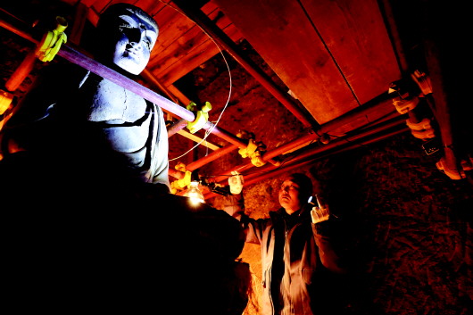 近年来,麦积山石窟艺术研究所等文物保护部门持续加大对麦积山石窟的抢救性保护和预防性保护工作力度,针对石窟塑像和壁画存在倾斜、松动、裂缝、空鼓、起甲等病害,积极探索现代科学技术手段与传统文物修复技艺相结合的保护修复新途径,同时加强日常巡查监测和修缮维护。11月2日,记者在麦积山石窟采访时了解到,近三年来,麦积山石窟已有29个洞窟获得保护加固,不断完善的保护修复方案让麦积山石窟千年瑰宝持续焕发光彩。 麦积山石窟,因其形似麦垛而得名,是“中国四大石窟”之一,也是世界文化遗产“丝绸之路:长安-天山廊道路网”的遗产点之一,被称为“东方雕塑陈列馆”。□图/文 新华社记者 陈斌 郎兵兵 ▲麦积山石窟艺术研究所保护研究室文物修复师牟常有在麦积山石窟133窟内查看塑像