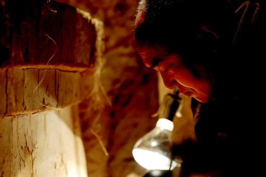 -->   ▲麦积山石窟艺术研究所保护研究室文物修复师牟常有在麦积山石窟133窟内修复塑像