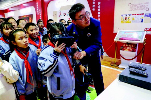 近日,武山县消防救援大队邀请辖区学校的师生开展消防安全教育活动。在科普教育基地,宣传人员通过AR模拟火灾现场、展示消防安全知识展板、消防隐患闯关小游戏等多种形式,向广大师生普及火灾的危害、预防措施以及火灾发生时的自救方法,提高师生的消防安全意识和自救能力。 张钰欣 摄