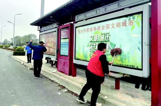 本报讯【新天水·天水日报记者蔚军平】城市公交站亭是城市公共设施的重要组成部分,既彰显了市民文明素养,也体现着城市文明形象。连日来,天水羲通公交旅游集团志愿者服务队队员走上街头,对秦州、麦积两区的公交站亭进行了集中清洗,以实际行动积极助力文明城市创建,为市民营造干净、整洁、文明的公交出行环境。 日前,记者在麦积区崖湾北、长城果汁厂、华建公司等公交站亭看到,天水大众公交公司的志愿者们带着水桶,手持抹布、拖布等对公交站亭的站牌、座椅等进行清理保洁。同时,清除张贴在公交站亭的小广告,重点对公交站亭不易清洗的盲点以及卫生死角进行了清理打扫,经过大家一番忙碌,公交站亭设施焕然一新。 “通过擦洗公交站亭,在让公交站亭更加洁净的同时,也提升了公司员工对创城工作的支持和参与度,倡导员工从自身做起,做文明风尚的践行者、传播者。”天水大众公交公司经理焦洋说。 记者从天水羲通公交旅游集团了解到,针对部分公交站亭存在的油漆脱落、破损,休息凳椅损坏以及“城市牛皮癣”等情况,集团实行了划片包干,动员全体员工进行全面卫生保洁、清理,对漆皮脱落较重的站牌进行重新打磨喷漆,让公交站亭换新颜。