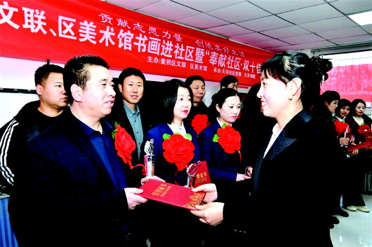 近日,麦积区文联、区美术馆联合桥南街道天河社区、天河书院开展以“贡献志愿力量 创造美好生活”为主题的系列活动,以进一步弘扬志愿精神,动员激励广大居民参与志愿服务、贡献志愿力量、创造美好生活。 活动期间,组织10多位书画艺术家开展了送书画进社区志愿服务活动。特邀医疗专家作了以“如何应对冬季传染病高发季”为主题的健康养生讲座。表彰奖励了2024年度“奉献社区·十佳优秀文艺工作者”“奉献社区·十佳优秀志愿者”,进一步弘扬了“奉献、友爱、互助、进步”的志愿精神,普及了“学习雷锋、奉献他人、提升自己”的志愿服务理念,营造了人人关注志愿者、人人尊重志愿者、人人争做志愿者的社会文明新风尚。 新天水·天水日报特约通讯员 窦耀辉 摄