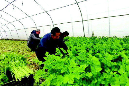 眼下正值寒风凛凛的冬季,但甘谷县六峰镇苍耳王村的蔬菜大棚内却是绿意盎然,村民们正忙着收割新鲜的芹菜。 六峰镇苍耳王村村委会副主任王旭杰说:“我们村集体现种植了7个大棚的芹菜,每个大棚可产4万斤左右。我们与酸菜厂签了订单协议,销售渠道有保障,今年村集体经济收入达30万元以上,也带动了周边群众的就业增收。” 新天水·天水日报通讯员 王永吉 摄