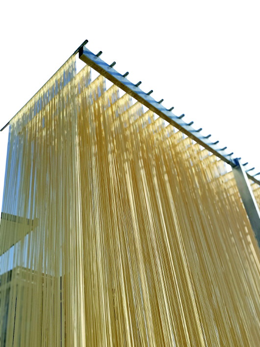 一碗浆水,一把挂面,汤汤水水,解热清火。食客难以忘怀的美味,游子无法泯去的乡愁。石佛挂面,人间清欢。 春节期间,来一碗浆水挂面,让酸爽的味道在舌尖散开。它仿佛带着家乡的风土人情,抚慰着人们的心灵。这不仅是一碗简单的面条,更是一种情感的寄托,一种对家的思念。 □新天水·天水日报记者 何喜田 一千多年前,秦岭、淮河的南北分界线划分出了南稻北麦的农业布局,也延展出了北人吃面南人吃米的饮食习惯。在天水,人们最喜欢吃的面食,当然是本地产的浆水面。而浆水的绝配,就是清汤挂面。这样的吃法,口味重于一切。 挂面是劳动人民在长期生活实践中创造出的一种方便实惠的快餐食品,其制作历史悠久。敦煌文献发现,早在唐代就出现了挂面,当时叫“须面”。到了宋代,面条真正呈现出了“条”的形态。 元代的《饮膳正要》是我国第一部营养学专著,其中所记的“挂面”,是有关挂面最早的文字记述。到了清代,书画家伊秉绶为方便招呼客人,让厨师将面粉和鸡蛋掺水擀成面条,晾干后油炸至金黄。食用时,开水一冲即可,当时人们称之为“伊府面”或“伊面”。这就是最早的方便面,也是真正意义上挂面的鼻祖。 一样面,百样吃,花样繁。天水人说到挂面,大多以三阳川石佛镇黄家庄中石村、西石村的所产最为上等。这里的挂面,因其油气饱满、色泽金黄、劲道十足而被人们称为金黄一品。 石佛镇,地处麦积区三阳川北部,蜿蜒的葫芦河流经而过。贯穿全境的耕地土层深、土质肥,且光照充足,是旱地冬小麦生长的极佳地理环境。有了天时、地利,加之当地人的智慧与勤劳,挂面在石佛的出产也就是顺势而为之事。石佛挂面所用的面粉,全是由地产冬小麦粉磨成。这种天宝之物,出粉率高,筋丝好,是其他地方的小麦所无法比拟的。 黄晓军,地道的石佛人,家里几代人都做挂面。因父亲年老体弱,他接手做挂面已经三十多年了。在他看来,做挂面最主要的环节是和面。现在和面,村里人大多用机器代替繁重的手工,但黄晓军却一直坚持手工和面。盐和水的配比,精密有序、恰如其分,这是几辈人的经验和秘传。加入了盐水的白面,蛋白分子的阵列会变得更加紧密,经反复揉压后,也更能增加面的弹性。 压面的工具是一条粗杠子,从父亲手里就一直在用。黄晓军夫妻坐在杠子的两头,一上一下仿佛是在玩跷跷板。和好的面在粗杠的按、揉、挤、压下,好像是暗合了夫妻俩默契的眼神与气力,片刻间变得更为柔韧。压平后的面团,还要抹油、对折、再压,如此5遍。两个小时后,柔软无比的面团就要被切条、搓条、缠条。 切条,是将面划成八九根胳膊般状的粗条。然后,就是搓、捏、缠。由团成条、成盘、成圈,面在倾注了手工的灵性后,会生发出微妙的质变。一圈,走油一次。再一圈,再走油一次,直至面盆满满。破晓时分,盆里的盘面完成二次发酵。夜里的空气干燥,水分蒸发快,缠面的速度至关重要。盆里的面,还要放入专用的面箱经过第三次发酵。这样做,可以让面得到最大程度的舒展。这叫醒面,唤醒面的灵性。 发酵好的面,在静静等待着上架,也就是被挂起来。 挂挂面,最辛苦的要数上架、下架。黎明时分,黄晓军夫妻就要把搓好、盘好的细条往架子上缠。所谓缠,就是根据面的重力,分几道挂上去,这是极其细腻的技术活。撑面杆从中间精准分开,面的柔韧与重力的合作恰到好处,在重力作用下,细条下垂,恍如金丝倾泻。160根一挂,能拉长到3米,直径1毫米左右。太阳初升,紫气东来,面架上晾晒的挂面,即将接受暖阳的洗礼、塑造。 渭河流域是中华文明的发源地之一,农耕的传统在这里世代延续。每一座院落的家族,长辈最在意的莫过于给孩子留下一门活口的手艺。三十多年来,黄晓军夫妻起早贪黑,不知道挂了多少挂面。每年中秋节之后,他们就开始挂面,一直做到来年2月底。在他们眼里,流传至今的每一个环节里,都渗透着父辈们的心传。所谓心传,除了世代相传的手艺,更多的是生存的信念以及流淌在血脉里的勤劳和坚守。 也正是有了这样的勤劳和坚守,黄晓军夫妻才会在循环往复的劳作中,找到更多的快乐和慰藉。因为,这也是他们的初心。 晒干的挂面易于贮存,更耐时日。持续发酵产生中空的细孔,让挂面的口感更为细腻、绵软。 最后一道就是切面、装把。就像兰州牛肉面一样,石佛挂面也分二细、三细、大宽。 石佛挂面,条形精致均匀、黄亮美观,能泡耐煮,且口感爽滑。随着市场化的进程,在葫芦河沿岸,大多有了加工企业,有了合作社,还有更多的人开设了家庭作坊。大量生产的挂面,在电商的助力下,更是远销兰州、西宁、乌鲁木齐等地,成为远方游子们无法抹去的牵挂。 流荡在季节里的石佛手工挂面,既是农耕社会的缩影,也是农耕文明最具代表性的传承。它不仅影响了人们对四季循环的感受,更多的是带来一种丰饶、健康、充满情趣的生活。其间凝聚着的,当是石佛人的智慧与心血。 在百年的漫长岁月里,有一千双手,就有一千种味道。洗尽铅华之后,石佛挂面就像这里盛产的浆水一样,无比神秘,却难以复制。从乡村到闹市,手艺的传授仍然遵循口耳相传、心领神会的传统方式。好在有了祖先的智慧、家族的秘传、劳作的心诀、食客的感悟,石佛挂面在每一个瞬间延伸出的美味,都会让人沉醉,让人惊叹。