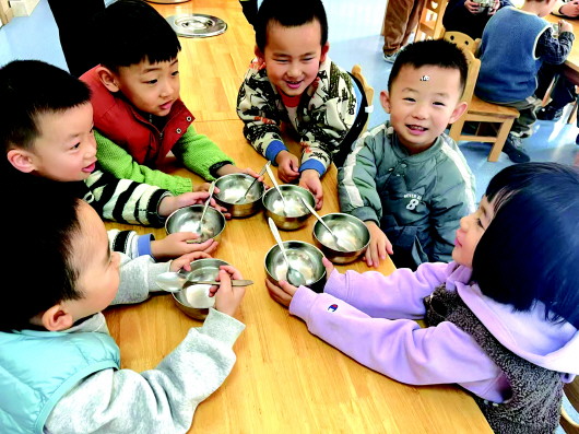 新天水·天水日报记者 蔚军平 节约粮食不仅是一种习惯,更是一种观念、一种美德。为了让节约粮食、爱惜粮食的种子扎根在孩子幼小的心灵深处,从小培养孩子勤俭节约的意识,知晓“盘中餐”的来之不易,就显得尤为重要。 一粒米,千滴汗,粒粒粮食汗珠换。近日,当记者走进秦州区东团庄幼儿园时,幼儿园走廊墙壁上“我们的小食堂”“一起光盘吧!”“一粒种子的旅程”等五颜六色的节粮爱粮宣传装饰内容格外醒目。 为深入贯彻落实《粮食节约和反食品浪费行动方案》精神,培养幼儿从小树立节约意识,养成节约习惯,秦州区东团庄幼儿园通过一系列活动,进一步引导幼儿珍惜粮食,反对浪费,营造节约型校园氛围,形成“节约光荣,浪费可耻”的良好风尚。在加强宣传教育方面,该幼儿园利用国旗下演讲、园内宣传栏、LED屏、班级微信群等渠道,定期发布节约粮食、反对浪费的宣传内容。在日常教学活动中,结合幼儿年龄特点,将节约理念渗透于课程中,进行初步的、粗浅的节约教育,如通过角色扮演、绘画、故事、游戏、儿歌等方式,让幼儿体验粮食的来之不易,把节约粮食的理念融入日常教学中。同时,在开展“光盘行动”中,厨房工作人员根据每天各班幼儿人数,掌握好备餐量,减少剩饭;各班教师根据幼儿的进食量少盛多添,避免浪费;吃饭时教育幼儿不撒饭菜、不剩饭菜,杜绝舌尖上的浪费。 东团庄幼儿园党支部副书记牟晓玲介绍,为了充分发挥“教育一个孩子,带动一个家庭”的作用,幼儿园结合“传承中华好家风”系列活动,提倡家庭爱粮节粮,弘扬勤俭节约良好家风的同时,通过家园合作,以家长会、班级微信群等方式,向家长宣传节约粮食、反对浪费的重要性,鼓励家长在家中也做好节约表率,形成家园共育的良好氛围。 到了午餐时间,在老师的引导下,孩子们认真用餐,吃光盘中餐,餐餐不剩饭已经成为孩子们的自觉行为。吃完饭后,他们纷纷举起自己的“光盘”进行展示,争当“光盘行动”的小冠军。 “为了加强食堂采购、储存、加工、分餐等管理,我们每天都有值班人员对就餐情况进行监督检查,并严格落实集中用餐陪餐制度。下一步,我们将进一步完善制度建设,将节约粮食、反对浪费纳入幼儿园管理制度中,建立健全长效管理机制,努力打造一个节约型、环保型的校园环境,为培养幼儿的节约意识和良好习惯奠定坚实基础。”牟晓玲说。 在天水市实验小学,争做“光盘侠”,不当“必剩客”也成为学生们践行“光盘行动”的一个目标。该校为了帮助学生们了解粮食的重要性,养成爱惜粮食、节约粮食的好习惯,激发学生们对劳动人民的尊敬之情,以全国粮食安全宣传周等活动为契机,开展以“珍惜好‘食’光,粒粒皆辛苦”为主题的教育活动,通过视频、PPT、图片、故事等多种方式,引导孩子们从小树立爱惜粮食的意识,理解节约粮食的重要意义,养成节约粮食的良好习惯。 “为了让‘爱粮节粮’观念入脑入心,我们将持续开展反食品浪费宣传教育,培养学生文明用餐习惯,从小做起,从细微处做起,将‘光盘行动’进行到底,共同守护校园美好‘食’光。”天水市实验小学大队辅导员高亚琼说。 东团庄幼儿园小朋友展示“光盘”