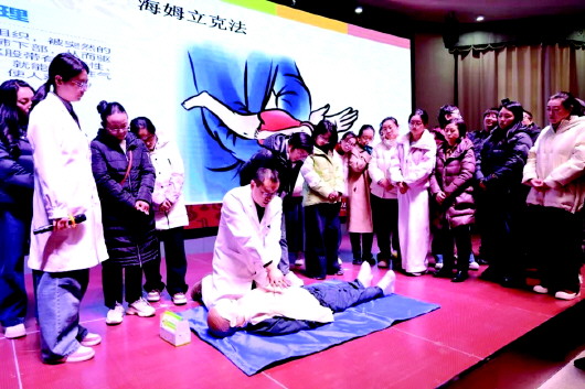 本报讯 12月17日,天水市妇幼保健院医生走进天水市城市建设投资(集团)有限公司开展急救知识与技能培训。 培训现场,医护人员结合企业人群特点,深入浅出地讲解了心脏骤停概念、识别及原因,现场心肺复苏的意义及操作流程,复苏体位和复原体位的翻转,自动体外除颤器(AED)的原理及操作方法等,并重点强调“黄金四分钟”的重要意义,现场指导员工进行心肺复苏实操练习,确保每位员工都能掌握正确的按压位置、力度及通气方法,活动现场学习氛围热烈浓厚。 此次急救培训活动的开展,使企业职工对基本应急救护知识有了一定的了解,提高了急救反应能力,建立了“时间就是生命”的急救理念。 (王元成)