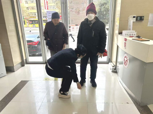 工行天水罗峪支行 近日,工行天水罗峪支行一大早就迎来了两位年过花甲的客户,两位老人走路颤颤巍巍,其中一位老爷爷的鞋带已经散开,随时有可能被绊倒,支行客服经理发现状况急忙上前关切询问,征得客户同意后,俯身为老爷爷系好鞋带,随后搀扶他们办理相关业务,得到了客户的真心感谢和夸赞。 王嘉欢 摄