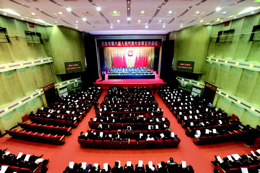本报讯【新天水·天水日报记者李国元 马放】12月25日上午,天水市第八届人民代表大会第五次会议在秦州大剧院隆重开幕,来自各行各业的市人大代表肩负全市人民的重托出席大会,认真履行宪法和法律赋予的神圣职责。 会场庄严简朴,气氛庄重热烈,主席台帷幕正中的国徽在鲜艳的红旗映衬下熠熠生辉。会场内悬挂着“深入学习贯彻党的二十届三中全会精神,奋力谱写中国式现代化天水新篇章”的横幅标语,鼓舞人心、催人奋进。 出席本次大会的代表人数符合法定人数。 上午9时,大会开幕。会场全体起立,高唱国歌。 大会主席团常务主席、执行主席贾义翔主持开幕会。 大会主席团常务主席冯文戈、刘力江、贾义翔、王燕、杨晓锋、胡志勇、申君明、何晓斌、何吉洲、黎映广、丁晓来、沈建玲、李继明担任执行主席。 在主席台就座的主席团成员还有:蒋晓强、张建杰、王文东、宋英武、张庆利、康泰来、李炯芳等。 出席会议并在主席台就座的有:市人大常委会原主任李世荣,天水师范学院院长汪聚应,市人大常委会原副主任安志宏、王晓琴、索鸿宾、杨永晖、李焕珍,副市长汪小娟、郭庆祥、储著贞、孟晓龙,市中级人民法院院长张志利,市人民检察院检察长杨耀明,天水军分区副司令员陈东伟。 大会邀请并在主席台就座的有:天水师范学院党委书记刘振奎,甘肃林业职业技术大学党委书记孙光慧,副市长张兴军、邬文玲,市政协党组副书记王东红,市政协副主席马勤学、王作谊、马筱宁、吴立新、崔玉军、何宝平、杨铁森、罗增芳、范多智,驻市某部政委姚菲。 市长刘力江代表市人民政府向大会作政府工作报告。报告共分2024年工作回顾、2025年主要任务、全面加强政府自身建设三部分。 刘力江在报告中指出,即将过去的一年,是天水发展历程中极为特殊、极不平凡的一年。习近平总书记亲临天水视察,为我们把脉定向、指路领航,让全市人民倍感温暖、倍受鼓舞。我们牢记嘱托、感恩奋进,汇聚起阔步新征程、建功新时代的磅礴力量。一年来,在省委、省政府和市委的坚强领导下,市政府坚持以习近平新时代中国特色社会主义思想为指导,深入贯彻党的二十大和二十届二中、三中全会精神,全面落实习近平总书记视察甘肃重要讲话重要指示精神,主动融入全省“一核三带”区域发展格局,锚定“三区一地一中心”发展定位,深入推进“四强”行动,做实做细“五量”文章,全市经济社会发展取得新成效。 刘力江在报告中指出,面对复杂严峻的经济形势,我们坚定发展信心,克服重重困难,咬定目标不动摇,强化调度不松劲,高质量发展扎实推进,经济运行向上向好,项目建设成效明显,工业经济提质增效,乡村振兴扎实推进,文旅融合引领消费潜力加速释放,生态环境明显改善,改革促进发展动能不断增强,群众福祉更加殷实,社会大局保持稳定,行政效能持续提升。2024年取得这样的成绩实属不易,这是习近平新时代中国特色社会主义思想科学指引的结果,是省委、省政府和市委坚强领导的结果,是全市广大干部群众团结奋斗的结果。 刘力江在报告中指出,2025年是“十四五”规划的收官之年,也是深入贯彻党的二十届三中全会精神的改革之年,更是我们全面落实习近平总书记视察甘肃重要讲话重要指示精神的关键一年。我们要坚持以习近平新时代中国特色社会主义思想为指导,全面贯彻落实党的二十大和二十届二中、三中全会精神,深入学习贯彻习近平总书记视察甘肃重要讲话重要指示精神,完整准确全面贯彻新发展理念,全面落实中央和省市委决策部署,锚定“三区一地一中心”发展定位,积极融入全省“一核三带”区域发展格局,深入实施“破局突围、加速追赶、重铸辉煌”专项行动,以改革深化攻坚破除体制机制障碍,以产业提质增效助推经济争先进位,以重大项目建设厚植区域竞争优势,以主动创安创稳提升社会治理效能,全力以赴兴产业、促消费、扩投资、惠民生、保安全,如期完成“十四五”规划目标任务,加快建设区域中心城市,奋力谱写中国式现代化天水实践新篇章。 刘力江在报告中指出,2025年全市经济社会发展的主要预期目标是:地区生产总值增长6%。规模以上工业增加值增长7%,固定资产投资增长8%,社会消费品零售总额增长7%,一般公共预算收入增长4.5%,城镇居民人均可支配收入增长7%,农村居民人均可支配收入增长8%。单位生产总值能耗、主要污染物排放控制在省上下达目标以内。 (下转第二版)(上接第一版) 刘力江在报告中指出,围绕上述目标,市政府将重点抓好七个方面的工作。一是坚持深化改革开放,加快破除发展障碍,深化重点领域改革,持续优化营商环境,提升对外开放水平,全力激发高质量发展新动能。二是坚持创新驱动战略,改造提升传统产业,培育壮大新兴产业,布局发展未来产业,强化科技创新引领,全力加快新型工业化步伐。三是坚持项目支撑带动,加快重点项目建设,加大招商引资力度,加强项目谋划储备,全力增强赶超发展后劲。四是坚持文旅融合发展,打造文化传承保护创新区,开创文旅融合发展新格局,提升公共文化服务软实力,全力打造文化旅游强市。五是坚持乡村全面振兴,高效发展现代特色农业,加快推进和美乡村建设,不断提升城市功能品位,大力提振城乡消费活力,全力促进县域经济发展。六是坚持保障改善民生,突出就业优先导