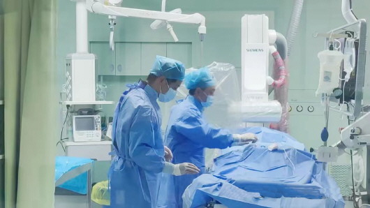 本报讯 12月24日,秦安县人民医院神经内科医师团队成功完成秦安县首例脑血管支架植入手术,顺利为一位因血管狭窄致脑梗死的患者实施了“经皮椎动脉药物洗脱支架植入术和锁骨下动脉支架植入术”。此项技术的成功开展,填补了秦安县在脑血管狭窄介入治疗领域的空白。 患者男性,72岁,于12月13日因“突发头晕伴左侧肢体无力”就诊于该院神经内科,行头颅核磁检查显示:右侧丘脑-基底节区腔隙性脑梗死(急性期)。12月24日,该院神经介入团队为患者顺利实施了“经皮椎动脉药物洗脱支架植入术和锁骨下动脉支架植入术”。整个操作过程安全顺利,术后造影显示血管狭窄部位完全恢复正常,患者安返病房。 (安梅玉)