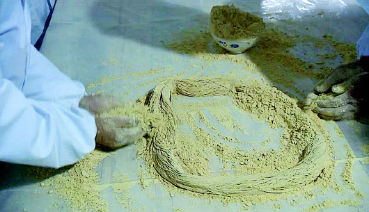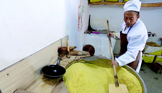 “祭完灶神吃灶糖,来年平安又吉祥。”原香久留,回味无穷,腊冬里的绝味——石佛灶糖。 寒冬腊月的静谧之中,坐落在麦积区石佛镇北面的柳家山村迎来了一年中最为甜蜜的时光。村民们要拿出手里的绝活,赶在小年之夜,制作出祖传的美食——灶糖。 □新天水·天水日报记者 何喜田 柳家山村距石佛镇大约五公里,西邻卦台山,南临渭水,属半干旱半湿润气候。山水之间,小麦、糜子、荏子等传统农作物生长茂盛。人杰地灵之地,盛产天宝之物,一直以来,村民们就是靠着这些优质的农作物生活生存,并在闲暇之余,制作着属于他们自己独有气息的饴糖——灶糖。 灶糖,全国都有,是一种又粘嘴又粘牙的麦芽糖。把它抽为长条形,就被叫“关东糖”,而拉制成扁圆形,就被叫“糖瓜”。它既是一种古老的传统名点,也是春节年节食品和祭祀用品。而石佛灶糖,有的一截一截,像块似条,有的一坨一坨,恍若元宝。不管哪种,都是天水人最爱吃的美食。 相传,石佛灶糖的制作工艺距今已有四百多年的历史。当时,随着人口的大迁徙,一户会做灶糖的手艺人家从山西大槐树来到渭河北岸的山上定居下来。因为这家人姓柳,当地人就以柳家山来称呼。之后,石佛镇有姓田的人家也迁来这里定居。于是,这门做灶糖的手艺便被柳家和田家人一代一代传承了下来。 石佛灶糖的制作一般是在冬季,寒冷的天气,更能营造出宜于制糖的氛围和条件。与传统技艺相比,石佛灶糖的制作工艺精巧而繁杂,主要有发麦芽、蒸黄米、淋糖、熬糖、拔糖、做糖等多道工序。因为每道工序既是体力活,也是技术活,所以一般需要多人合作才能完成。 发麦芽是做灶糖的第一道工序。麦芽用地产的优质小麦浸泡而成,一般十五天后可生发出寸许之长。麦芽即将生成时,就可用水淘泡黄米。黄米,是用糜子舂成,灿黄瓷实。泡好的黄米要放在特别制作的蒸锅里往熟里蒸,一般人家,一次下料50斤左右。柳家山人把蒸黄米用的锅灶叫接口,所谓接口,有联通、畅达之意。接口里,不仅要蒸米,还要熬糖。黄米至少要蒸四遍,每透一次气,就翻搅晾冷一次。前两遍二三十分钟即可,后两遍则需四五个小时。分寸的掌握,全凭对温度的感知。 黄米蒸好后,就要与捣碎的麦芽一起拌匀,然后放入缸内淋糖。缸有一米高,与接口一样,都是特制的。相传,淋糖技艺始于元代,《天工开物》记载,淋糖意为“吸附脱色”,可使“洁白如雪”。一般分为四遍,从一淋到四淋,一遍用时三五个小时不等。淋好的糖水,被倒入接口中来熬,叫熬糖。熬糖时,先用大火,再用小火,通常用时一个多小时。熬糖,既费体力,又需技艺,四五个人要轮换着搅动糖稀,以防烧糊。当糖稀逐渐变稠时,就要用木锨来铲动,以防变硬。 熬好后的糖稀出锅后,要稍微放一会儿。这时,人们又在接口中倒入需要的黄米来蒸。待热腾腾的蒸气出来后,就可以拔糖了。拔糖是做糖最有观感的一道工序。所谓拔,就是拉出,颇为有趣。高手拔糖,气定神闲,越拔越有劲,越拔花样越多,且层出不穷。热糖的温度达到100度以上,没有多年的历练,免不了就会被烫伤。而拔糖时间的长短,是一种技艺,更是一种经验。拔糖、取糖,堪称绝活,这是柳家山村手艺人秘而不宣的技艺。因为从他们手里取下来的热糖是空心的。空心,能使糖脆而不硬,更为好吃。而其圆鼓鼓的形状,更是暗合了中国传统文化里圆通、圆润的艺术境界。 随着生活的变迁,石佛灶糖的品种花样发展到十多种。除了祭灶用的灶糖外,还有龙须糖、荏板糖、豆瓣糖、核桃糖、芝麻糖、灯笼糖、生肖糖等,可以说是五花八门,色香味俱佳。其中有的品种堪比雕刻,极具观赏价值。从实用性到艺术品,这或许正是“上天言好事,下凡降吉祥”的灶爷对石佛人的一种甜蜜回报吧。 和一般的灶糖不同,石佛灶糖里的荏板糖是在热糖中加入一些优质的荏子制作而成的。荏子是中国北方广泛种植的一种油料作物,南朝医药大家陶弘景在《本草经集注》中记述,“荏状如苏,其子研之,杂米作糜,甚肥美,下气补益”。荏子香而不腻的味道,是北方人最喜爱的绿色食品。随着温度的提升,热锅中的荏子被慢慢烘干,散发出温糯的香味。当荏子和熬好的热糖奇妙地糅合后,就要被粗布包裹起来。一滚,再滚,像面团一样滚成方块,再经过擀、切,成为条状,这就是荏板糖。 龙须糖的做法也很精妙。和其他地方有所不同,石佛龙须糖在制作时要加入炒熟的豆子面,所用的热糖是从糖锅中直接舀出的稠糖稀,翻转、调和后,就能拔丝。有了豆面的参与,拉出的糖丝长若龙须,细密酥软,所以民间又叫酥酥糖。 灶糖,本为祭祀灶神而制作的一种糖品。祭祀灶神,是中国民间传统里最普通的一种俗世化的方式。《礼记·祭法》记载,“王为群姓立七祀”,七祀之中有一祀就是祀灶,而寻常百姓只能祀其一。《本草纲目》记载,由黄米而成的灶糖,可润肺生津,养心安神。也许灶糖诞生之初,人们只是为了一种神秘的祭祀,但随着时间的流变,灶糖的概念已超脱了小年祭灶的范畴,演变成为一种最具烟火气的饴糖甜品,并延展出一个个美轮美奂的大世界。 欢乐的时光里,在绝技里的原香久久存留。寒腊里的灶糖,在街口里、在大街小巷里,一次次悄然发生着质变。那些古朴的香味,那些迷离的甜腻,那些悠长的叫卖声,都能够让我们回味过去,重返童年。也正是有了这些小小的灶糖,我们朴素