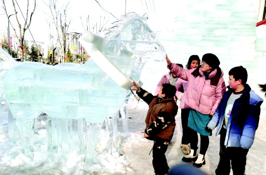近日,一场美轮美奂的冰雕艺术展在张家川易德广场盛大开展,吸引了众多市民和游客前来观赏游玩,为寒冷的冬日增添了一抹绚丽的色彩。冰雕展区,一件件冰雕作品在阳光的映照下闪烁着迷人的光芒,它们造型各异,栩栩如生,引得游客们纷纷驻足拍照留念。 马威 摄
