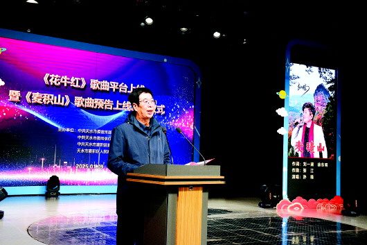 □新天水·天水日报记者 徐媛 刘一澜从座位上起身,走到话筒前,开始他的致辞,就像每次他出现在家乡媒体前一样。 1月9日,天水市融媒体中心演播厅内,《花牛红》《麦积山》两首原创歌曲发布会上,著名词作家刘一澜以词作者的身份进行了致辞。 他说:“我是从2017年,踏上用音乐展现天水文化历程的。” 作为一位从中国西部之星西藏发迹的词作者,刘一澜自1997年开启歌词创作之路起,就将笔触伸向了他无比熟悉的西藏,近30年的时光,他写遍了西藏所有的地市。 于是,发布会后的采访,我们自然而然地从他的创作历程谈起。 谈及创作历程,刘一澜回忆起刚到拉萨的那段岁月:“那时,我主要从事编辑记者工作,西藏丰厚的文化如潮水般向我涌来,我深刻地感受到写作就是我的宿命所在,进而对文字也有了敬畏感。”他的话语中充满了对文字的尊重与热爱,“我崇尚诗意,后来又迷恋上了民族音乐,于是便将文字与音乐结合,演绎成歌曲”。 从1997年至今,刘一澜的歌词创作之路不可谓不精彩。他有过一个人包揽整台晚会所有歌词创作和主持词撰稿的萌芽期,也有过一天一首词地连续写了43天的井喷式创作爆发期,更有过为西藏各地市文化节开幕式创作二十余首文化节歌的辉煌期,但“最出彩的当属1999年为全国第六届少数民族运动会拉萨分赛场创作的会歌《欢聚拉萨》”。说到这儿时,刘一澜眼中闪过一丝自豪,“这首歌在西藏极为流行,成为了每次聚会人们自发演唱的酒歌,也是许多晚会压轴的歌曲,其地位可见一斑”。 除了为西藏各地市创作文化节歌,刘一澜还为许多县写过县歌。其中,为西藏桑日县创作的《爱在思金拉错》通过网络平台火遍全国,而他为自己家乡创作的县歌《娲皇颂》更是耳熟能详。 当话题转向家乡——天水秦安时,刘一澜的语气变得更加柔和:“离开家乡后,我才真正意识到它的珍贵。” “秦安文化可以追溯到8000年前,它深厚的文化底蕴对我后期的创作产生了深远影响。”刘一澜感慨道:“我在23岁时离开家乡去了西藏,虽然当时并未意识到其特殊性,但秦安文化已在我心中扎了根。”刘一澜与老乡徐东明分别于2017年、2021年携手为秦安创作的《娲皇颂》及《梦回大地湾》,便是最好的证明。 此外,他们还于2023年再次合作推出的《卦台颂》,将卦台山的神秘与庄重展现得淋漓尽致。 “天水这个地方虽不大,但全国好多人都知道,甚至有些人都不知道甘肃,却知道天水。”刘一澜的话语中透露出一丝自豪,“天水是文化的源头,从文化的层面来说,天水有着悠久而漫长的历史。天水不仅拥有伏羲文化、大地湾文化、先秦文化等丰富的文化资源,众多诗词名句也都与天水有关,像‘蒹葭苍苍,白露为霜。所谓伊人,在水一方’。还有杜甫写天水的《秦州杂诗》,其中‘月是故乡明’‘露从今夜白’等,都非常美,都让人深感天水文化的魅力……”谈及天水文化,刘一澜无疑是自信且话语如流的。 “与老乡徐东明的多次合作,都怀着对家乡的深深热爱和对天水文化的执着探寻,将对这片土地骨子里的领悟与灵魂里积攒的墨水,悉数融入每一个音符、每一句歌词之中。我们以天水的三大景区——伏羲庙大景区、大地湾大景区、麦积山大景区为依托,满腔热情地创作文艺作品,希冀通过有感染力的音乐,让更多人领略天水的自然风光与深厚历史文化,让天水的文化如璀璨星辰般,照亮更多人的心灵。”回溯为天水创作歌曲的过程,刘一澜说,每次创作都让他对天水有了全新的认知。 “此次创作的《花牛红》《麦积山》,歌词中更是融入了天水的文化符号与历史情感。”刘一澜的话语中充满了对天水的热爱与自豪,“这些歌曲不仅是对天水的赞美,更是我个人情感与天水文化交融的体现”。 从未为除西藏以外的其他地方创作的刘一澜,在为故乡天水写歌时,心中也曾涌动过近乡情怯的复杂情绪。“天水,是令人无比骄傲的存在。可越是熟悉,便越感敬畏,生怕笔力不足以描绘其万一。但当我静下心来,尝试着去触摸这片土地的灵魂,便找到了大地湾、麦积山、卦台山,以及花牛苹果这些闪亮的切入点。沿着这些线索深入探寻,天水的历史文化、神话传奇便如一幅徐徐展开的画卷,呈现在眼前。那些古老的传说、悠久的文明,都在诉说着天水的过往与荣光,激发着我用音符和文字,为这片生我养我的土地,谱写一曲曲深情的赞歌。”刘一澜坦言。 采访最后,一向以“山水诗人”自诩的刘一澜却告诉记者,他想要为天水创作一首无关山水,类似于《成都》那样充满烟火气和情感的《天水》。“天水于我,早已不只是地图上的一个坐标,而是心灵深处的温暖归处。”刘一澜目光灼灼,眼中满是深情,“我希望当人们听到《天水》时,哪怕未曾踏足这片土地,也能被那浓浓的烟火气感染,感受到这座城市的心跳与温度……” 与刘一澜交谈的近一个小时,让记者忆起海德格尔说过的,诗人的天职是还乡。或许,久居西藏早已让他的身体适应了那里的气候、饮食与生活节奏,但记者更愿意相信他是一位正在“还乡”的诗人,愿意相信萦绕于他心间,挥之不去的是故乡独有的景致:晨光透过窄巷,洒在早起摆摊的商贩身上,热气腾腾的早点摊前,邻里们笑着寒暄,那质朴的乡音久久不散……