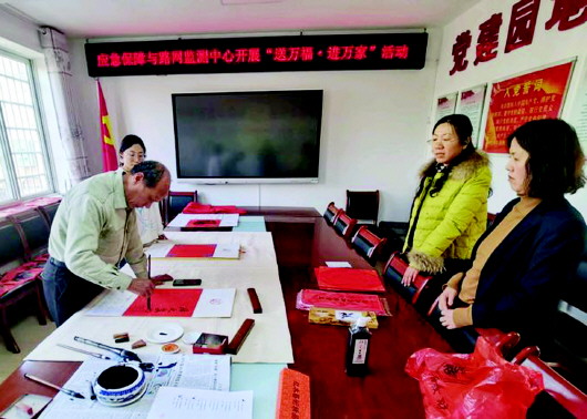 新春即将来临之际,天水公路应急保障中心工会邀请我市书法家现场写春联、送祝福,为广大干部职工送上辞旧迎新的美好祝福。活动现场,书法爱好者们奋笔疾书、挥毫泼墨,一副副洋溢着新春祝福的福字和对联跃然纸上。 杨鹏真 罗娜 摄