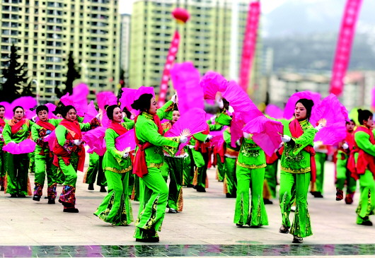 2月12日,农历正月十五元宵佳节,武山县举办了“弘扬传统文化、体验渭川非遗”为主题的非遗文化汇演活动。 扭秧歌、舞长龙、耍狮子、跳旋鼓舞……展演现场,秧歌社火队员们身着艳丽的服装,手拿彩扇,腰系彩带,在鼓点的敲击下用动感的舞姿、灿烂的笑容,为当地群众送上了一场充满春意与祝福的视觉盛宴。 关招宏 赵超 摄