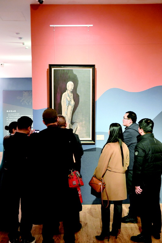 新天水·天水日报记者 马放 李旺旺 2月25日,由省文化和旅游厅、市委、市政府、省文物局、敦煌研究院主办,市委宣传部、市文化和旅游局、甘肃简牍博物馆、麦积山大景区管委会、麦积山石窟艺术研究所承办的“东方微笑”麦积山石窟壁画艺术特展在甘肃简牍博物馆开幕,为观众带来了一场石窟壁画艺术盛宴,向更多人展示跨越千年“东方微笑”的迷人魅力。 麦积山石窟,作为中国四大石窟之一,以其精美的泥塑艺术闻名于世,而其中的壁画艺术更是熠熠生辉,宛如一部镌刻在石壁上的史诗,承载着北魏、西魏、北周、隋、唐等多个朝代的文化记忆,跨越时空界限,在岁月的长河中,始终散发着独特的魅力,吸引着无数人前来探寻、欣赏,成为人类艺术宝库中一颗璀璨的明珠。 艺术是时代的眼睛,壁画是文明的注脚。这些跃然于墙面的线条与色彩,不仅诉说着历史的回响,更彰显着当代艺术家对传统的敬畏与创新。 麦积山石窟艺术研究所副研究馆员杨晓东告诉记者:“本次特展不仅是对麦积山石窟壁画艺术的一次集中展示,更是对传统文化的传承与弘扬。展出的作品非常有特色,其中有堪称中国之最的北朝大型经变画‘西方净土变’‘睒子本生故事’以及中国石窟寺壁画中独有的‘薄肉塑飞天’壁画等精品佳作。” 去年9月份,习近平总书记来到麦积山石窟,沿着栈道仔细察看距今1600多年的洞窟和雕塑、壁画。习近平总书记指出,我国四大石窟是中华文明的瑰宝,都具有重要的历史价值、文化价值。他希望文物工作者赓续“莫高精神”,潜心为国护宝,为传承创新中华优秀传统文化、增强中华文化影响力作出更大贡献。在今年的新年贺词中,习近平主席提到“麦积山石窟‘东方微笑’跨越千年”。习近平总书记对天水厚重文化念兹在兹,不仅对文物工作者寄予殷切期望,更为我们提供了接续奋进、再启新程的思想引领和实干争先、再谱新篇的实践指南。 “东方微笑”是贯穿麦积山石窟造像和壁画艺术始终的千年微笑,麦积山石窟的壁画人物面部线条柔和,嘴角微微上扬,那一抹含蓄而温暖的笑意,仿佛穿越千年时光,传递着和善与宁静,彰显出东方艺术独特的神韵和内敛之美,被誉为最美“东方微笑”。 为了让观众更好地理解壁画背后的历史文化内涵,展览不仅有高清的壁画作品,还搭配了详细的文字解读、多媒体展示,通过现代科技手段,力求还原壁画的原始风貌。在这场精心准备的石窟壁画艺术盛宴中,每一件作品,都不仅仅是视觉的享受,更是心灵的触碰与对话。 兰州市民吕女士在参观完特展后说:“这次展览像是一座桥梁,让‘东方微笑’跨越千年深入人心,仿佛置身于千年之前的石窟之中,鲜活又灵动,让我感受到了历史的厚重与艺术的震撼。今后我一定会去麦积山石窟参观,探寻这座‘东方雕塑馆’的无限魅力。”
