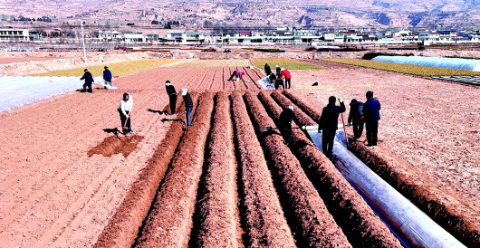 眼下,甘谷县新兴镇雒家村村民正抢抓晴好天气,松土、撒种、起垄、覆膜,马铃薯种植工作正如火如荼展开。据了解,甘谷县今年通过引进沃土系列、内蒙古226等优良马铃薯品种,引导全县群众种植早春马铃薯,种植面积达到6万亩,为促进全县农业增效、群众增收奠定了基础。 何乐 董洋 摄
