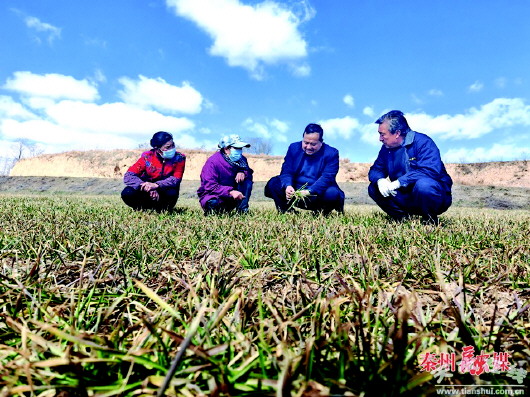 本报讯 雨水至,春耕忙。眼下,秦州区32.66万亩冬小麦陆续进入返青期,正是加强春季田间管理、促进苗情转化升级的关键时期,农业技术人员积极指导种植户抢抓农时施肥、喷药、除草,加强田间管护,为今年小麦丰产丰收奠定坚实基础。 在平南镇王坡千亩粮油试验示范点,放眼望去,冬小麦如绿色地毯般覆盖在田野上,为初春的大地增添了一抹清新的色彩。基地务工人员在农技人员的指导下,正在为冬小麦施肥、喷药,促进小麦生长。 “咱们基地的核心区一共是1050亩,油菜100亩、小麦950亩,现在进行的是小麦返青期的田间管理,除虫除草。”示范点现场负责人武蝴蝶说。 为了提升春耕春种质量,秦州区农业技术人员到田间地头,查苗情、查墒情、查病虫害,持续跟踪苗情动态变化,指导种植户落实落细田管措施,真正做到分区分类、对症施策。 “今年我们早谋划、早动手、早行动,现在开始对全区种植的32.66万亩冬小麦进行田间管理,当前主要就是对小麦进行追肥,种植户严格按照技术指导方案进行田间管理,为小麦丰收打下良好的基础。”秦州区农业技术综合服务中心推广研究员杨建太说。 近年来,秦州区积极落实“藏粮于地、藏粮于技”战略,牢牢守住粮食安全红线,实现粮食产量连年丰产。 (杨文慧 赵婷)