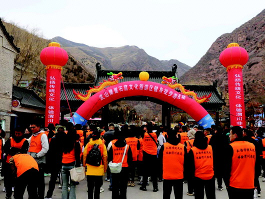 阳春三月,万物复苏。3月2日,武山摩崖石窟文化旅游区迎来了一场别开生面的健身徒步游活动,来自全县各单位的200多名职工群众齐聚于此,共同开启这场融合文化、健身与旅游的盛会。 活动以“弘扬传统文化,体验渭川非遗”为主题,起点设在摩崖石窟文化旅游区大门,全程约12公里。此次活动,不仅丰富了职工群众文化活动,还进一步提升了武山摩崖石窟文化旅游区知名度,为擦亮渭川文化品牌,促进文旅融合发展注入了新活力。 杨彦春 康正东 摄