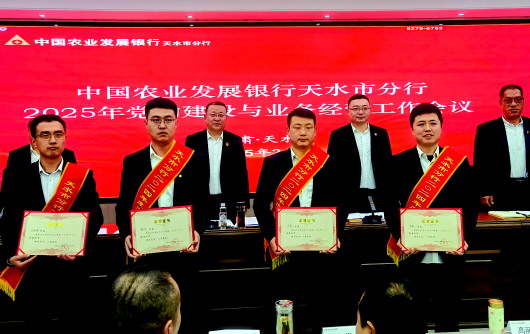 近日,在中国农业发展银行天水市分行召开的2025年党的建设与业务经营工作会议上,对该行去年在深入实施“党建领航”工程以及协同推进履职发展、业务经营、改革创新和风险防控工作中,涌现出的一批精于管理、积极作为、实绩突出的集体和爱岗敬业、甘于奉献、忠诚担当的先进个人进行了表彰奖励。 陈飞 胡维璧 摄