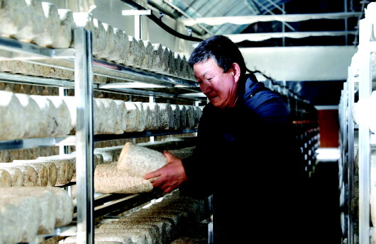 日前,在清水县白沙镇赵沟村食用菌种植基地内,工人们正加紧对菌棒进行上架作业,为4月底首茬食用菌丰收奠定基础。据了解,该基地每日可完成3万菌棒上架作业,4月份上市。预计今年赵沟村年产滑子菇、平菇、白木耳等食用菌36万余斤,带动当地农业增效和农民增收。 王卫东 王永强 摄
