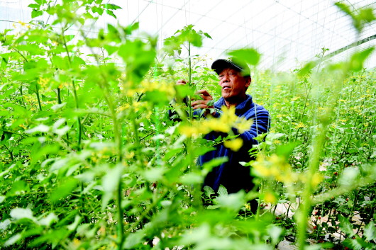 3月4日,在甘谷县安远镇现代农业产业示范园区,村民们正在现代储热高标准设施冬暖棚里劳作。这座占地170多亩的示范园区通过党建引领和科学的规划管理,成功引进了适宜当地环境的玲珑小番茄种植,实现了作物的高效生产和全年全周期生长。得益于科学的种植技术和精心的管理,园区的玲珑小番茄产量喜人,每个大棚全年产量可达1.3万斤以上,不仅为村集体带来了可观的分红,也让种植户户均收益超过4万元。 新天水·天水日报记者 周文涛 景春燕 摄