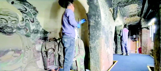 麦积山石窟是世界文化遗产,被誉为“东方雕塑陈列馆”。千百年来,石窟内的雕像历经风雨,依然保持着神秘的微笑。而在这微笑背后,有一群默默奉献的文物保护工作者,他们用青春和汗水,守护着这份珍贵的文化遗产。今天,让我们跟随记者的镜头,走近这群“石窟守护者”。 “悬崖千重梯,洞窟如蜂房。”在麦积山的崖壁上,雕凿着221座洞窟,现存造像3938件,壁画1000余平方米,距今已有1600多年的历史。不同时代的石窟艺术瑰宝,在这里一览无遗。第133窟的小沙弥眯着双眼,嘴角上扬,天真烂漫“微微一笑”,触动无数游客的心。第44窟的造像更因为慈祥平和的微笑被称为“东方美人”。这些穿越千年的微笑造像,成了麦积山石窟标志性的文化IP。 麦积山石窟地处林区,多雨潮湿的气候导致塑像和壁画容易出现空鼓、开裂、脱色等病害,给石窟保护带来了极大挑战。近几十年来,一代又一代的专家学者、文物保护工作者坚守荒野,涉险绝壁,通过加固修复、渗水治理和生物防治等各类保护措施,古老的麦积山石窟转危为安。90后的文物修复师张斌,日复一日地下绣花功夫,有时候修复一处起皮的壁画,就需要花费几天的时间。 针对不同年代、不同用料的雕塑和壁画,修复师们会专门从麦积山周边地层中寻找合适的修复泥土,甚至会认真选择和泥所用的水。 这几年,麦积山石窟艺术研究所在不断完善传统的“喷、锚、粘、托”技术上,引入X射线衍射仪、X射线荧光光谱仪等高科技分析仪器,为保护方案的制定与实施提供科学依据。如今,麦积山石窟已完成50余个洞窟的保护加固,200余身塑像、200余平方米壁画的修复。 在麦积山石窟,平时的日常巡护也至关重要。胡军舰和同事们只要进入工作区域,就会自动开启“鹰眼”模式。大多数时候,只要凭肉眼观察就能发现细微的变化。 目前,麦积山石窟依托物联网、云计算、大数据等前沿技术,建立了文物风险监测预警体系,对石窟大环境、洞窟微环境、文物本体等进行实时监测,提升了麦积山石窟的风险管控能力。此外,这两年,麦积山石窟还借助数字化采集、3D打印技术等手段,以多种形态“活起来”“走出去”。记 者 手 记 守护千年瑰宝,传承中华文明。一代代文物保护工作者们与时间赛跑、与岁月抗衡,用奉献与热爱守护着麦积山石窟这份珍贵的文化遗产。如今,越来越多的中外游客慕名而来,麦积山石窟也正以崭新的姿态,向世界展现中华文明的永恒魅力。