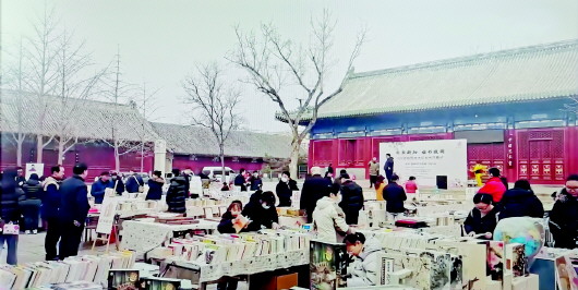 近日,“旧书新知·读书报国”北京报国寺古旧书市开市。本届书市汇聚近百家展商、300余个特色展位,集中呈现逾万册古籍文献珍品,吸引了众多爱书人前来“寻宝”。当日,北京市东城区在明城墙遗址公园启动“旧书新知展春颜”活动。活动精选与北京城市史、古建筑保护等主题相关的古籍旧书进行展览,让市民、游客在赏花的同时,还能品味书香。 (据新华社)