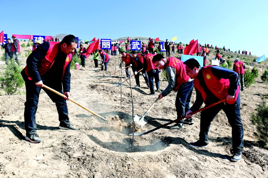 3月10日,在植树节到来之际,武山县开展2025年全民义务植树活动。当天,在该县陈家山义务植树点,来自乡村、社区、学校、企业以及各单位、各部门的近万名干部群众和劳动模范、青年志愿者、少先队员代表搬运树苗、扶树填土、压土浇水,现场一片热火朝天的植树景象。共栽植云杉、油松、白皮松、刺槐等树种20万余株,完成植树面积2000亩。 近年来,武山县深入践行绿水青山就是金山银山理念,开展大规模国土绿化,连续建成了广武坡、盘龙山、马家山、陈家山4个万亩造林基地,为黄河流域生态保护交出“武山答卷”。 新天水·天水日报记者 孙镇 摄