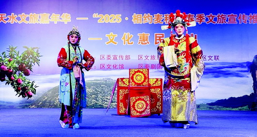 3月16日晚,天水文旅嘉年华——“2025·相约麦积”春季文旅宣传推广活动秦腔惠民演出在麦积区桥南建材市场五道街精彩上演。当晚,经典秦腔折子戏《花亭相会》正式拉开演出序幕,随后,《黑虎坐台》《司文郎》《杀庙》等经典曲目轮番上演,引得台下观众喝彩连连。“2025·相约麦积”春季文旅宣传推广活动是天水文化旅游嘉年华系列活动之一,除了精彩的文艺汇演,还安排了天水麻辣烫美食展销、特色产品推介等活动。新天水·天水日报通讯员 马玉婷 摄