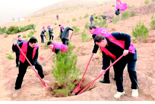 春天万物生,信合种希望。近日,武山县信用联社积极响应县委、县政府号召,组织干部职工在山丹镇陈家山开展义务植树活动。植树现场,联社主要领导、机关部门、基层网点的干部员工,身着“一爱一卫”红色志愿服,分工协作,挥锹铲土、扶苗填坑、培土夯基,提水浇灌,井然有序,共同栽植云杉、油松、白皮松等树种300余株。经过紧张有序的劳动,新栽植的树苗整齐排列,在春日暖阳中展现出勃勃生机。 汪鑫煜 摄