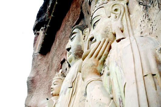 七佛阁是麦积山石窟中规模最大的一个洞窟。据考察建于北周的保定、天和年间,距今已有一千四百多年。这座气势宏大的石窟,是当时秦州大都督李允信,为追悼先父不惜大量耗资,动用了四万多人工,汇集各地能工巧匠开凿而成。 相传,李允信热衷于开石窟、造佛塑像,且不惜耗费重金。他听说供奉七佛功德最大,便开始建造七佛阁。由于好大喜功,他不顾劳民伤财,下令主持工程的大和尚从千里之外开采大青石,运到麦积山,并要精雕细刻,在阁内塑满佛像。可是这一工程太巨大了,大和尚无法完成,却又慑于他的权势而无计可施,便只有在夜间默默向佛祖祈求保佑。万幸的是佛祖体谅大和尚的难处,对其说道:“佛,西方净土极乐世界而来,泥塑成身,才合体统。”大和尚听后非常高兴,可是李允信却不相信,于是摆了道场要请佛答辩一番。 佛祖道:“我有慈航普度之心,劝善化俗,去其昏迷。你为亡父做些功德,万万不可为所欲为。”李允信道,“我是一片诚心,想开石窟、造石像,为的……”佛祖打断他的话,道:“佛生西方,必用西方净土塑身。”李允信听后,问道:“为何龙门和云冈的天王、金刚都是石雕?”佛祖解释道:“佛自西方来时,带的净土,在敦煌已用得大半,剩下净土只能用在麦积山,这样龙门、云冈只得用石头代替了。”李允信听后,便将七佛阁的佛像全部用泥塑成。 “千佛廊,万佛堂,鹞子翻身牛儿堂。”在很早以前,沿着麦积山的古栈道攀登而上,从散花楼到牛儿堂,中间无栈道可通,游人想要参观,只有抓住悬挂在窟外峭壁顶上一根几丈长的铁链子,像鹞子翻身荡秋千那样,凌空飞过去,才能到达牛儿堂,非常惊险。 相传在明朝,一年农历四月初八,麦积山举行庙会,人山人海。秦州城有个州官也坐着轿子前来山上凑热闹。这个胆小的州官游完了散花楼后,看着有人抓住铁链荡到牛儿堂,也头脑一热,想自己试试看。这一下可忙坏了随从,他们想了许多办法,费了很大周折,才想出用麻绳套了死扣,将其牢牢地绑在铁链子上,这边人推,那边人接,好不容易把这个州官送了过去。 可是牛儿堂是麦积山东崖最高的洞窟,离地面有几十米,上悬下空,当州官身上的绳子一解开,低头一看崖下,游人如蚂蚁一般走动时,便吓得面如土色,从脊梁骨冒出冷汗来,哪儿还有一丝的游兴,便急忙喊着要下山回家。而若要回去,还得照样抓住铁链子荡过去,可这时州官的心扑通直跳,任凭随从怎么劝说,他总是摇头摆手,说什么也不敢再荡回去。最后,他命令随从下山去准备火把、榔头和钢钎,要把石崖挖掉,开一条石栈道出来。 只是这石崖非常坚硬,一榔头砸下去一个印子,一钢钎钻下去一个豁口。就这样火把通明,锤声叮当,直折腾到第二天晚上,才挖开了不大的一个小洞。此时州官早已等不及了,一看差不多人能过去就命大家住手,说让他先试一试。怎知他因为太胖,别人爬着能过去,可他就是过不去。最后,头伸出洞外,身子却卡在洞中,进不去也退不出。随从先是前拉后推,结果衣裳都撕成了碎片,却还是进不得又退不得。正在无可奈何时,石匠中走过来一位精瘦的老人,他拍了拍州官说:“委屈您啦,您只管往后退,我保管您平安无事。”这时,州官即使有再大的威风也抖不出来,只得任凭老人摆布。而说时迟,那时快,只听“哐”一声响,老人的钢钎已将洞门开大,州官便轻而易举爬了出来,丝毫没有损伤。只见他满脸泥土,狼狈至极,待回过神要感谢石匠老人时,老人已不知去向。人们这才明白,竟是神仙前来帮助。 后来,当地人将那个洞又开凿扩大了许多,人们只要低下头就可通过,而那根铁链至此也再不见。明朝嘉靖年间,有人在这个洞的顶上镌刻了“小有洞天”四个大字,时至今日还能看见。明代诗人甘茹诗曰: 小洞何年辟,斑斑斧凿新。 群生悲觉路,万劫启迷津。 秦蜀金牛险,阴晴玉洞春。 谁知三昧外,彼岸复无垠。 如今,小有洞天已成为麦积山石窟一道亮丽的风景,吸引着海内外的游客。话说天水·麦积传说■ 辛轩专栏 ■