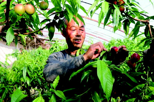 本报讯【新天水·天水日报通讯员王跟弟】人勤收获喜,硕果满枝头。近日,秦安县兴国镇依仁村的油桃基地迎来丰收季。温室大棚内绿意盎然,红彤彤的油桃挂满枝头,颗颗鲜嫩饱满,散发着诱人光泽,令人垂涎欲滴。 走进依仁村油桃种植户王平平的大棚里,阵阵桃香扑鼻而来,成排的油桃树整齐列队,1米多高的油桃树枝繁叶茂,熟透的果实压弯了枝头。“我种了5个棚,大概有600棵树,现在上市的是极早518,大概价格是20-22元一斤,预计清明前后上市东方红,陆续还有华光、丽春、超红珠等品种。” 得益于适宜的海拔、气候和土壤条件,依仁村的油桃在品质上极具优势,味道香甜、色泽鲜艳、产量颇高。王平平在果树间小心地摘下一颗表皮透着红晕的油桃说:“我们家的油桃个大、皮薄、肉厚、口感甜,现在有好多客商前来询问预订。” 大棚油桃喜获丰收,果农的致富路越走越宽。近年来,秦安县不断加大政策和资金扶持力度,逐步增加油桃新品种、新技术推广力度,形成了科学种植、旅游观光、电商销售等环节的油桃产业链。依仁村的油桃产业仅是“桃经济”的缩影。目前,已形成“早中晚”熟品种搭配的全产业链,大棚油桃不仅上市早、品质好,而且经济效益显著,为果农实实在在带来一笔“甜蜜”的收益。