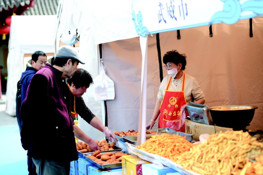 4月4日,清明假期首日,全国各地的游客前往天水伏羲庙游览打卡,并在伏羲广场品尝“甘味”美食。“千山万水·食在天水——陇原美食荟”餐饮促消费系列活动在伏羲广场举行,来自全省14个市州的115家餐饮企业、“甘味”农产品等领域的知名品牌企业参与活动。清明假期,伏羲广场人头攒动,游人如织,美食香气四溢,吸引了大量游客驻足品尝、选购。 新天水·天水日报记者 李旺旺 摄