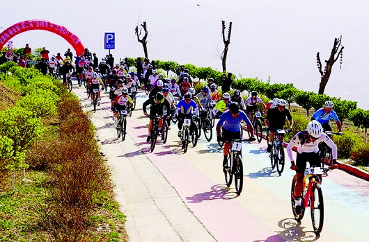 4月13日,2025年甘肃秦安桃花会系列活动——秦安县第二届“杏树湾杯”山地自行车比赛在千户镇杏树湾开赛。本次赛事设置男子组、女子组2个组别,来自省内外的70余名运动员参赛。 秦蓉 摄