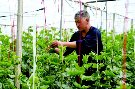 近日,笔者走进武山县洛门镇新龙村,只见蔬菜大棚内西红柿、黄瓜、辣椒、菜瓜、水萝卜等各种蔬菜长势喜人。近年来,新龙村立足资源禀赋,以“党支部+合作社+农户”模式发展蔬菜产业,将“小蔬菜”做成了富民“大产业”,“蔬”写着乡村振兴“新答卷”。2024年,全村蔬菜外运总量超10吨,年产值突破1500万元,户均增收2万元。 新天水·天水日报通讯员 郭永强 董世雄 摄