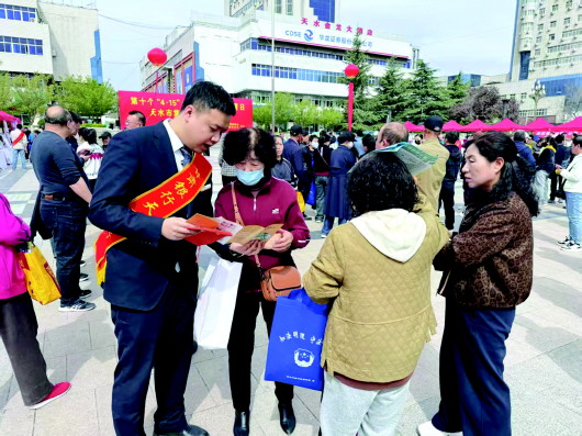 工商银行天水分行 ◥4月15日,工商银行天水分行积极开展“4·15”全民国家安全教育日集中宣传活动。宣传活动由工商银行天水分行安全保卫部牵头,法务部、内控部、信贷管理部、办公室机要室参加开展集中宣传,支行网点同步在营业场所、门前进行宣传,部分支行参加当地政府组织的集中宣传。 宣传期间,向市民群众散发宣传折页和传单,并通过LED屏、广告机等循环播放宣传教育图片与视频。重点宣传了保密知识、电信诈骗、存取款、防范养老金诈骗、非法集资等知识,展示了工商银行大行担当,取得了良好的社会效果。 刘武权 摄建设银行天水分行 ◤为深入贯彻落实总体国家安全观,增强全民国家安全意识,4月15日上午,在第十个“全民国家安全教育日”到来之际,建行天水分行开展了“国家安全教育日”主题宣传活动,以实际行动践行金融机构的社会责任,助力营造维护国家安全的浓厚氛围。 当天,建行天水分行通过设立宣传展台、发放宣传手册、现场讲解等形式,向群众普及《国家安全法》《反间谍法》等法律法规,并结合金融行业特点,重点宣传防范电信诈骗、反洗钱、网络安全等知识,引导公众增强风险防范意识,筑牢金融安全防线。 宋超 摄农行武山支行 开展“全民国家安全 教育日”主题宣传活动 本报讯 4月15日,农行武山支行开展了“全民国家安全教育日”主题宣传活动。 活动期间,农行武山支行在武山县宁远广场通过发放宣传手册、现场讲解警示案例、张贴海报等形式,向群众普及《国家安全法》《反洗钱法》《网络安全法》等相关法律法规,重点讲解金融诈骗、非法集资、洗钱等违法犯罪行为的危害及防范措施,帮助公众增强风险防范意识,提升识别和应对金融风险的能力。此外,农行武山支行还通过网点LED电子滚动屏、微信朋友圈等渠道,推送国家安全和金融安全知识,引导公众树立正确的金融安全观念,共同维护国家安全和社会稳定。 农行武山支行负责人表示,下一步将积极履行社会责任,以此次活动为契机,持续加强金融安全宣传教育,强化内部风险防控,提升金融服务水平,为维护国家安全和金融稳定贡献农行力量。 (缑海兵)甘肃银行天水分行 ▲近日,甘肃银行天水分行在龙城广场开展了“全民国家安全教育日”宣传活动。此次活动重点围绕反诈、反洗钱、反假币、国家安全和科技安全等内容展开,旨在提升公众的安全意识和风险防范能力,营造全社会共同参与维护国家安全的良好氛围。 活动现场设置了专门的宣传区域,摆放了反诈、反洗钱、反假币、国家安全和科技安全等方面的宣传资料,供市民免费领取。许多市民表示,通过此次宣传活动,对国家安全、反诈和反假币等方面有了更深刻的认识,也更加明确了自己在维护国家安全中的责任和义务。 师马绪 摄武山县信用联社 ◤4月15日是第十个全民国家安全教育日,也是《国家安全法》颁布施行10周年。为深入贯彻落实总体国家安全观,切实履行金融机构的社会责任,武山县信用联社开展了系列宣传教育活动。 当天,武山县信用联社、县财政局等多家单位在县宁远广场开展了国家安全宣传教育活动。活动现场,工作人员通过悬挂宣传横幅、发放宣传资料等方式,聚焦习近平法治思想和总体国家安全观,重点对防范金融诈骗和维护金融安全知识进行了宣传。现场发放宣传资料、折页500余册,全方位向群众解读金融安全,切实增强群众的金融意识和安全观念。 汪鑫煜 摄