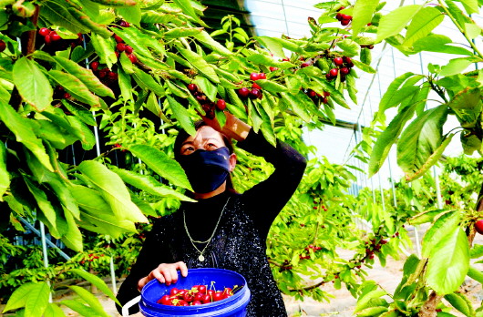 本报讯【新天水·天水日报记者张文都】当多数地区的樱桃树还在酝酿花苞,天水市的早熟大樱桃已率先挂满枝头。4月15日,记者踏入麦积区中滩镇设施樱桃示范园区,25座设施大棚内,翠绿的枝叶间,颗颗如红玛瑙般的大樱桃缀满枝头,在阳光下泛着诱人的光泽。果农们穿梭在樱桃树间,小心翼翼地将成熟果实摘下,丰收的喜悦在园区内弥漫。 “今年我们的樱桃能提前15天上市,全是科技立下的功劳。”麦积区农业产业扶贫开发有限公司总经理霍伟东望着色泽鲜亮、果大饱满的樱桃,满脸自豪,“通过技术创新和水肥一体化等智慧手段,我们不仅抢到了市场先机,预计产值也会比去年提升不少。” 这座示范园区是东西部协作的亮眼成果。2020年,麦积区农发公司创新采用土地入股、资金入股模式,整合天津市西青区东西协作帮扶资金750万元,总投资1200万元建成该园区。25座设施大棚、4座冬暖棚、8座连栋温室大棚,搭配占地120亩的露地樱桃种植园,美早、布鲁克斯等多个国内外优质樱桃品种在这里落地生根、茁壮成长。 “我们采用水肥一体化滴灌系统,就像给樱桃树配备了专属营养师。”园区技术员介绍,“通过土壤传感器实时监测数据,系统能精准计算每棵树的需水需肥量,自动配比营养液,肥料利用率大为提升,还节约了用水。”再配合温湿度自动化调控系统,为樱桃树营造出最适宜的生长环境,不仅果实甜度更高,更实现了设施樱桃“当年栽植、当年见果”,露地樱桃“栽后三年见果、四年丰产”的高效种植目标。 示范园不仅是农业科技的“试验田”,更是助农增收的“发动机”。“我们构建起‘公司+村集体+农户’的紧密利益联结机制。”霍伟东介绍,园区每年发放土地流转费22万余元,支付保底分红12万元,有力推动汪李、霍坪、文岔等村集体经济不断壮大。同时,园区常态化开展技术培训、现场指导,已培养出多名懂技术、会管理的本土种植能手,带动周边果农增收致富。