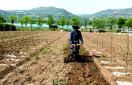 马玉婷 刘芳 王玮瑕 当老果园华丽蝶变,会激活怎样的振兴动能?当果树大豆“牵手”,会碰撞出怎样的致富火花?麦积区甘泉镇给出了精彩答案,通过在农业种植领域积极探索,实施果园挖改与大豆套种模式,为当地农业发展注入新活力,在希望的田野上描绘出一幅如火如荼的新图景。 笔者日前走进甘泉镇八槐村的老果园改造示范点,看到一排排新栽种的苹果树苗迎风舒展,焕发出勃勃生机。村民们正穿梭于整齐的田垄间,抢抓农时在苹果树林间套种大豆。他们有的忙着除草,有的驾驶着小型农机翻耕土地,还有的手持专业农具,专注地放入豆种、填土……大家分工明确、各司其职,现场一派热火朝天的劳作景象。 八槐村曾是甘泉镇远近闻名的苹果种植专业村,然而随着时间推移,果树老化、品种单一等问题日益凸显,传统果园产量下滑、收益缩水,发展陷入瓶颈。今年初,八槐村启动老果园挖改项目,引进抗病性强、市场前景好的新品种,并配套实施“深翻改土+水肥一体化+病虫害绿色防控”等技术措施。新苗成活率达95%以上,较传统栽种方式提高了近30%。 据了解,由于新植苹果树至少需要5年时间才能挂果,生长周期长,前期收益有限,在苹果树种植初期,果树较小、叶片生长稀疏,树下土地长期闲置。而大豆生长周期短、植株矮,与苹果树在光照、养分等方面竞争小。在这期间,在林下套种大豆低矮作物,当年就能有收益,刚好能够填补幼龄果树没有产出的空白,有效提高土地综合利用率。 “我们八槐村今年老果园挖改项目涉及普通挖改560亩、矮化密植96亩,果树树苗已经全部种植结束。矮化密植的果树明年开始零星挂果,三年挂果率将达到50%,5年以后亩产将达到8000斤,很受群众欢迎。”甘泉镇八槐村党支部书记阮引全高兴地说,“现在正在进行大豆套种,套种面积96亩,预计5月中旬基本结束。为了提高群众收益,政府每年每亩还补贴500元,在果树生长期套种大豆,当年就能产生收益,村民种植积极性很高。” 近年来,甘泉镇立足本地资源优势,聚焦果品产业发展,围绕果园改造提升、产业提质增效等方面精准施策,积极探索助农增收新路径。“今年,我镇实施老旧果园改造提升1415.68亩,防雹网519.29亩,果园提质增效900亩。目前,苗木已全部种植完成,长势良好。与此同时,为帮助农户增收,我们在改造果园进行‘大豆套种’项目,以一亩三分地生四分金的理念,利用苹果保水土、豆根固氮肥的特性,三年挂果期套种三季豆,采取一地多收,助力农民不断增收。”甘泉镇副镇长张莉平说。 以“改”破题,用挖改举措重塑产业筋骨;以“新”赋能,借科技与智慧激活土地潜能。甘泉镇将坚持把做大做强果品产业作为富民强镇的重要举措,把产业振兴作为乡村振兴的突破口,按照“老果园抓挖改、盛果园抓提升、幼果园抓管理”的果品产业发展思路,助推全镇果品产业转型升级和高质量发展。
