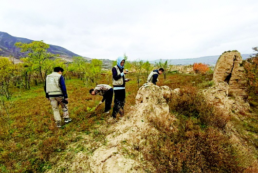 屋 檐 下秦州·文物普查散记之十一· 初秋晴朗的一天,落叶随微风飘落,风中夹杂着缕缕苹果的清香。 我们今天的普查地是位于武山县的一处遗址。由于该遗址距离县城非常远,且路途比较难走,经过一番长途跋涉、翻山越岭,待到目的地的时候,很多普查队员都晕车了。下车后,大家根据“三普”资料辨别着方位向目的地走去。队长边走边说:“这里是县级文物保护单位,有寺洼文化遗存,希望此行我们会有不一样的发现。” 听了队长的话,大家满怀信心地沿着崖边仔细寻找着这里的文化层和标本,而且每一位队员均按照各自的职责,开始进行点上的任务。他们有的弓着腰、低着头,有的手里拿着简单的工具,一步一寸地认真寻找着文化的遗迹。 就在这时,只听队长喊了一声:“这里有发现,大家快来。”我们迅速向队长那里走去,原来崖边一个不起眼的位置,静静地躺着一片手掌心大小的灰陶片。就地取了样本照片后,队长拿起灰陶片和大家研究了起来,那陶片上清晰的渔网纹,看着确实让人惊喜不已,令人爱不释手。 羡慕之余,结束讨论的普查队员又开始了寻“宝”之旅,大家都希望自己也可以发现不一样的标本。这一次,我也很快找到了几片漂亮的石岭下彩陶标本。终于,在大家共同努力下,我们找到了很多标本和遗迹,同时也发现了更多的文化类型,让这里的文化底蕴更加丰富起来。 经过测量和观察,这里的文化层堆积厚度达1米左右,有灰坑、房址等,生活坑中还发现了大量打制石器,诸如石斧、石刀、石镰等的碎片。可以说,这一处遗址几乎涵盖了陇中地区新石器时代到青铜时代(距今6800年至2900年)的各种文化类型。该遗址文化类型的丰富性、完整性、延续性都罕见,基本涵盖了仰韶文化、马家窑文化、齐家文化、寺洼文化等。除此之外,还有大量秦汉时期的墓葬。 普查工作一直持续着,夕阳中的尘土深处,队员们依旧在灰层附近找寻着标本,并认真进行挑拣分类。他们互相讨论着每一片陶片的年代和历史,脸上洋溢着灿烂的笑容和对文物工作的痴迷神态,似乎已经忘记了时间,忘记了秋日渐凉的寒风,更舍不得离开这方文化胜地。 或许普查工作就是这样,我们在不断地实践和学习齐家文化、仰韶文化、马家窑文化等不同文化类型的特征,从而掌握更多的文物知识。而那种对于文物工作的痴迷和热忱,也只有我们才能了解其中的感受,并激励着我们勇往直前。相信没有什么可以阻挡大家在普查一线挥洒汗水,对文物工作保持热爱和执着。 (郭冰凌)