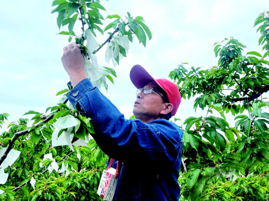 5月9日,秦州区玉泉镇烟铺村果农抢抓晴好天气,给大樱桃开展疏果、套袋等精细化管护,力促今年产量与效益双丰收。 近年来,玉泉镇发挥多重优势打造乡村产业振兴示范区,推动大樱桃产业升级。烟铺村获评全国“一村一品”示范村,摘得“中国樱桃产业高质量发展示范乡镇”称号。目前,全镇大樱桃种植近万亩,年产量350万公斤,产值达7350万元,成为当地经济发展的强劲引擎,“秦州大樱桃”品牌愈发响亮。 新天水·天水日报通讯员 张敏 杨文慧 摄