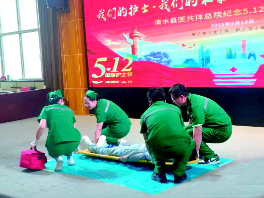 5月12日,清水县医共体总医院举办“5·12”国际护士节纪念大会,激励广大护理工作者坚守初心、勇担使命,提升医疗服务质量。大会首先通过模拟心肺复苏、脊髓损伤、高处坠落等常见危急情况,展现清水县医共体总医院急救团队的专业性与高效性。在“假如我是一名患者”演讲中,两位演讲护士站在患者的角度,分享了对医疗服务的感悟。健康科普视频中,护士们制作动画视频讲解日常保健知识,用点滴行动传递着关爱。 王雅娟 摄