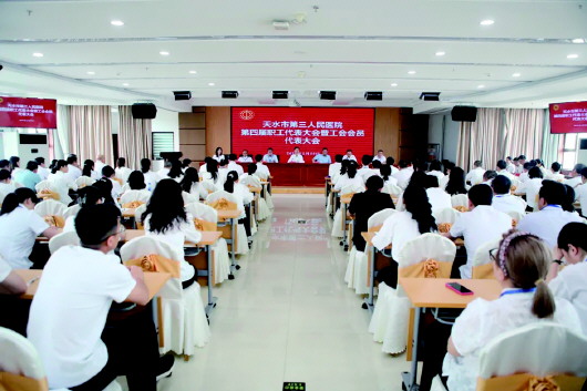 为进一步凝聚职工力量,推动医院高质量发展,近日,天水市第三人民医院隆重召开第四届职工代表大会暨工会会员代表大会。大会表决通过了《天水市第三人民医院第四届职工代表大会暨工会会员代表大会选举办法》,宣读了工会委员候选人基本情况和总监票人、监票人、计票人人选,并选举产生了院工会新一届“三委会”委员。新一届委员组织召开了院工会第四届委员会一次会议,选举产生了第四届委员会主席和副主席、经费审查委员会和女职工委员会主任。 裴建新 摄
