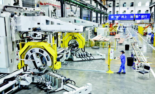 8月4日,在哈尔滨电机厂有限责任公司线圈分厂智能制造车间,工人在进行生产作业(无人机照片)。 用“数智化”等先进技术改造提升传统产业已成为中国老工业基地哈尔滨发展新质生产力的重要路径。近年来,哈尔滨把科技创新作为产业跃迁动力,推动创新链、人才链与产业链的加速耦合,让“哈尔滨智造”在传统装备制造业领域绽放新光,一幅“老工业基地+新质生产力”的共生图景徐徐展开。 新华社发(刘洋 摄)