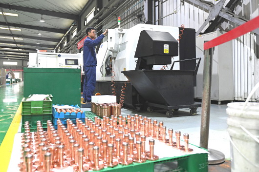 8月6日,天水西电长城合金有限公司的工人正在生产合金电工触头部件。今年以来,该公司不断提高科技研发能力,以科技赋能实现企业转型升级,并应用新技术、新工艺降本增效,实现企业高质量发展。 新天水·天水日报记者孙镇 摄