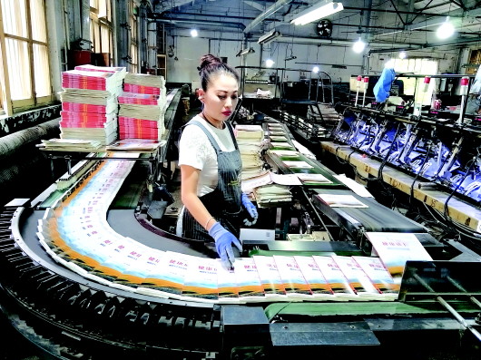 本报讯【新天水·天水日报记者蔚军平 实习生马千惠】随着暑假“余额”日渐减少,秋季开学也日益临近。为确保完成省内外260万册教材教辅的印刷任务,天水新华印刷厂干部职工加班加点工作,保障开学“课前到书,人手一册”。 8月5日,记者走进天水新华印刷厂生产车间,伴随着机械设备的轰鸣声,一页页纸张在印刷机高速运转下,从传送带上“飞”过。在装订车间,写有“全面贯彻落实‘印装质量提升年’行动”和“确保‘课前到书,人手一册’”等内容的红底白字横幅悬挂在车间上方,格外醒目。工人师傅们分散在胶订联动线的不同岗位,随着机器不停转动,进行着码页、巡查巡检、整捆打包等工作。 “这是我们厂最新引进的一台高速三菱商业轮转印刷机,是第一次参与教材教辅的印刷。这台印刷机的投入使用,让我们的印刷效率提高了30%,和其他三条装订生产线‘并驾齐驱’,开足马力赶印教材教辅。全厂干部职工坚守岗位,全身心投入生产印装全过程。”天水新华印刷厂办公室主任史旭升指着一台高速运转的印刷设备大声给记者说。只见在这台印刷机的旁边,配有一个独立的机械臂上下挥动着,正把完成印刷后从传送带上传送来的教材码放整齐。 据史旭升介绍,天水新华印刷厂此次承担着秋季省内外共计27个品种260万册各类教材教辅的印刷任务,从6月25日就开始着手教材教辅印刷工作,截至8月4日,已经完成116万册各类教材教辅的印刷量,并已出库交付。 “为了高质量完成教材教辅生产印装任务,我们从生产调度、印刷发运、质量督查等环节入手,明确责任分工,强化科学调度,注重印装质量,全厂干部职工齐上阵,在教材教辅大忙季实行轮班制的生产模式赶印相关产品,确保秋季教材教辅在8月15日前顺利完成。”天水新华印刷厂厂长李树兴说。