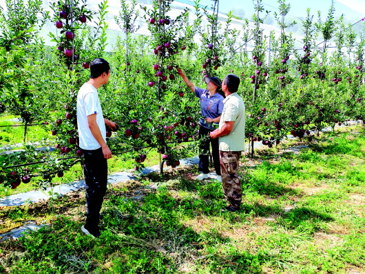 8月15日,记者走进清水县金集镇曹沟村的花牛苹果有机果园看到,改造后的果树长势喜人,清水县果品产业发展中心的农技人员正在细致查看果实着色度和饱满度,现场为群众讲解采收前的管理要点。这片2022年改造的果园种植了50多亩花牛苹果,凭借科学管护实现次年挂果,如今在标准化种植、采收的推动下,正稳步迈向高品质、好收益的良性发展轨道。