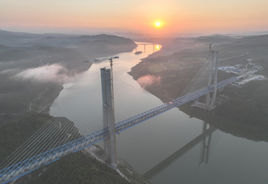 8月18日拍摄的汉江特大桥(无人机照片)。8月18日,由中铁十一局承建的西安至十堰高速铁路汉江特大桥钢桁梁顺利合龙。西十高铁西起陕西西安,向东南穿越秦岭山脉,终点为湖北十堰,正线全长255.76公里,设计时速350公里。西十高铁开通后,西安至十堰将实现1小时内到达,汉江特大桥钢桁梁的合龙为全线如期建成通车奠定了基础。 新华社记者 程敏 摄