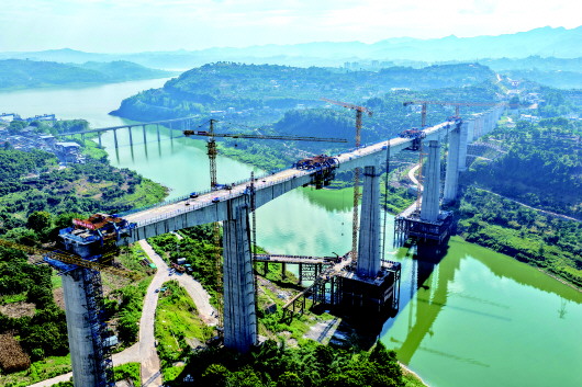 当日,由中国铁建大桥局承建的重庆至万州高速铁路(渝万高铁)渠溪河双线特大桥顺利合龙。渝万高铁渠溪河双线特大桥位于重庆市涪陵区珍溪镇,横跨长江支流渠溪河,全长约953米,是全线重难点工程。